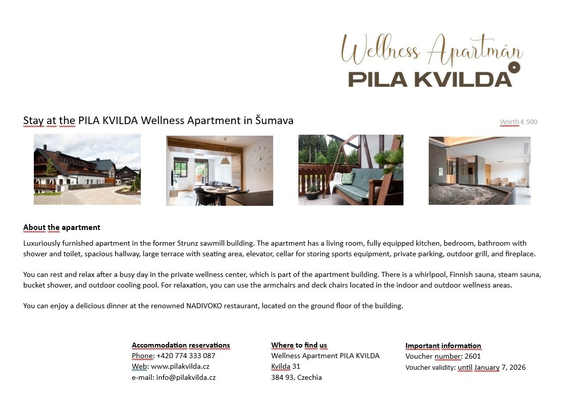 Udělejte radost svým blízkým koupí dárkového poukazu na pobyt ve Wellness Apartmánu PILA KVILDA.